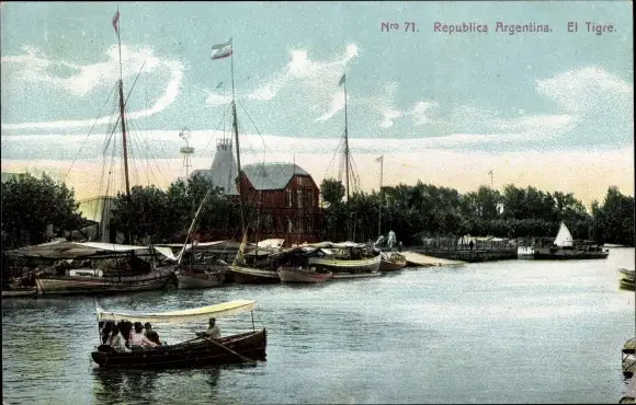 Ak Republica Argentina Argentinien, El Tigre, Flusspartie, Boote