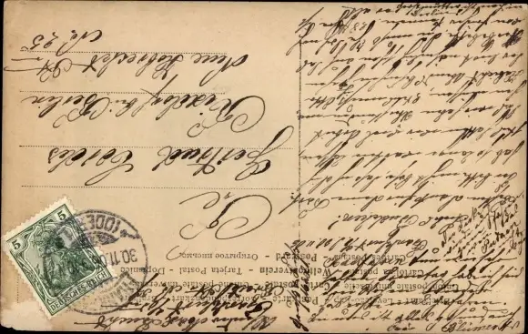gelaufen 1906, Eckknick rechts unten, leichter Eckabriss links unten, sonst guter Zustand