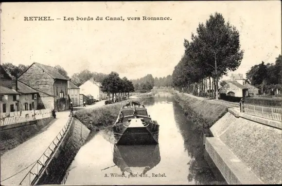 Ak Rethel Ardennes, Les bords du Canal, le bateau