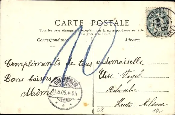 Zustand, siehe Scan, gelaufen, 1905 - ca 14 cm X 9 cm
