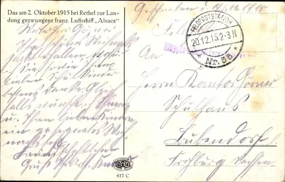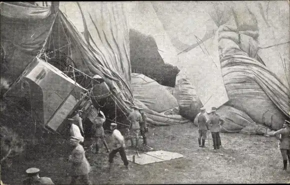 Ak Rethel, zur Landung gezwungenes Luftschiff, 1915