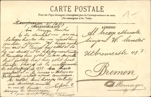 gelaufen 1913, Eckknick links unten, sonst guter Zustand