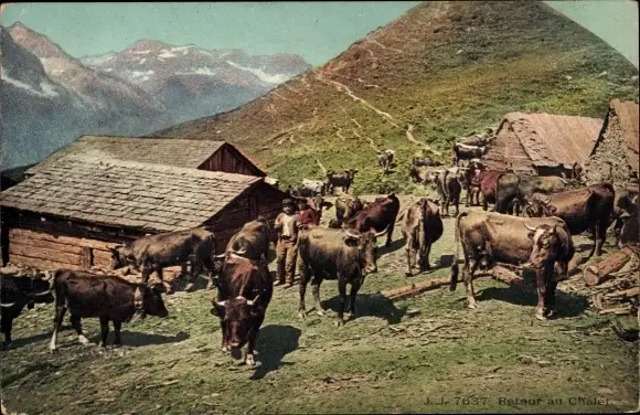 Ak Retour Au Chalet, Kühe