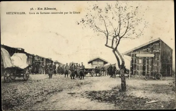 Ak Retzwiller Retsweiler Retzweiler Elsass Haut Rhin, Bahnhof der französischen Armee