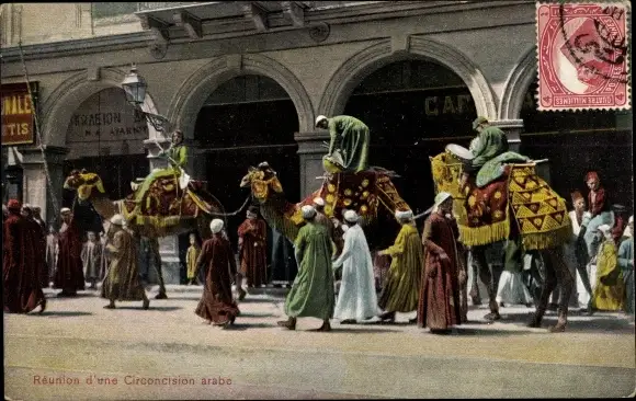 Ak Reunion d'une Circoncision arabe, Kamele, Araber