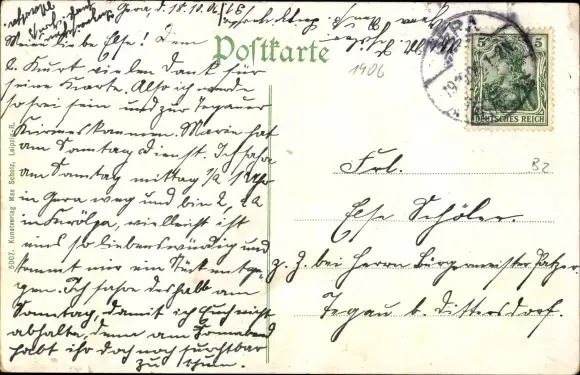 Zustand, siehe Scan, gelaufen, 1906 - ca 14 cm X 9 cm