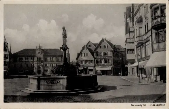 Ak Reutlingen in Württemberg, Marktplatz, Brunnen, Schreibwarenhandlung