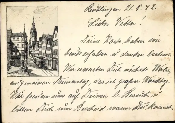 Ak Reutlingen in Württemberg, Wilhelmstraße mit Lindenbrunnen, Straßenbahn