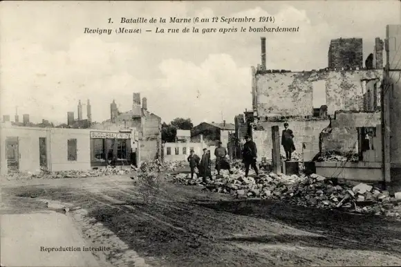 Ak Revigny Meuse, La rue de la gare apres le bombardement