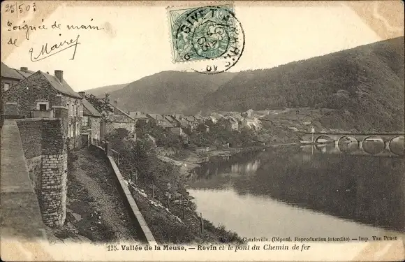 Ak Revin Ardennes, Pont du Chemin de fer, Vallée de la Meuse