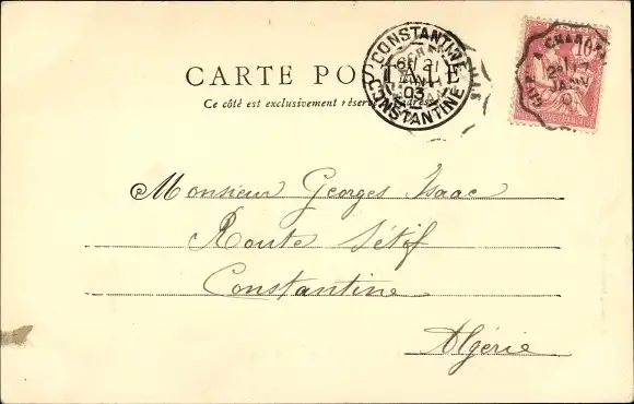 gelaufen 1903, Eckknick rechts unten, fleckig, sonst guter Zustand