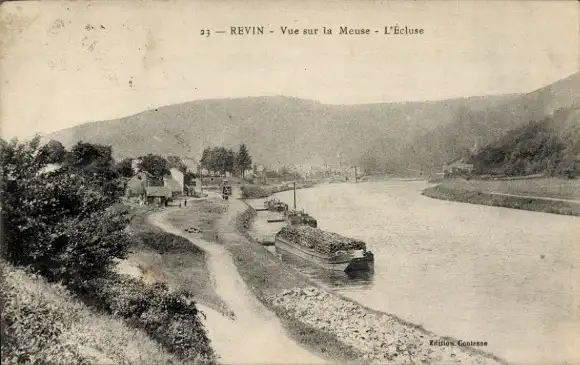 Ak Revin Ardennes, vue sur la Meuse, l'Ecluse
