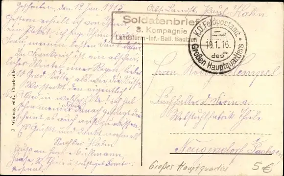 gelaufen als Feldpost 1916, sehr guter Zustand