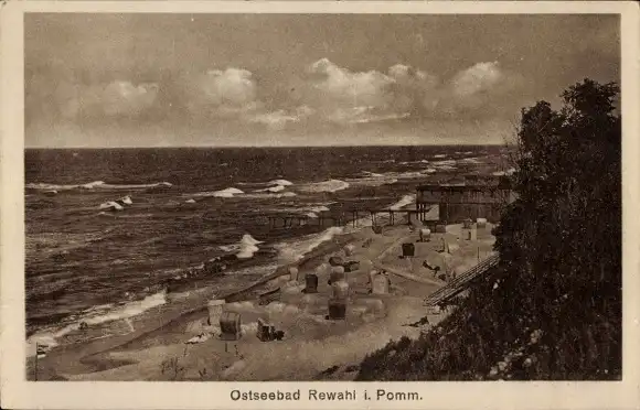 Ak Rewal Rewahl Pommern, Ostseebad, Strand, Strandkörbe, Wellen