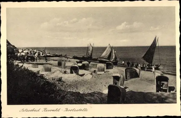 Ak Rewal Rewahl Pommern, Strand, Bootsstelle