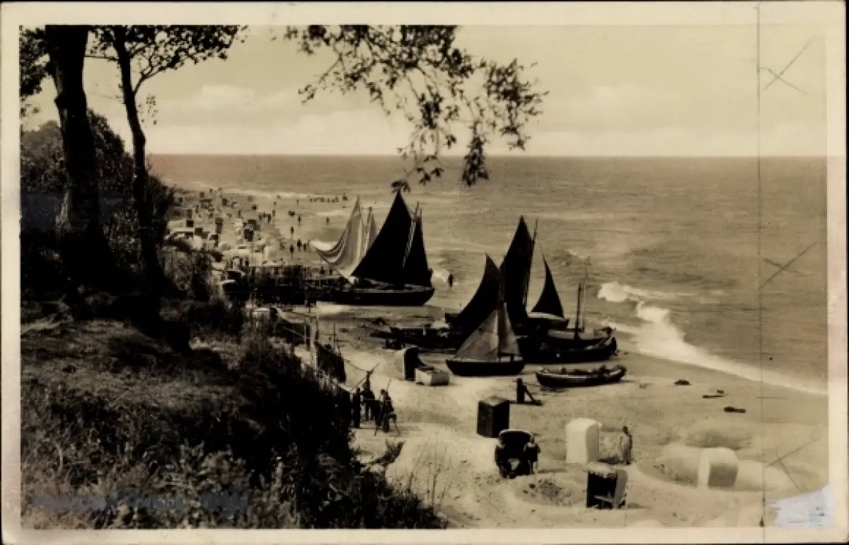 Ak Rewal Rewahl Pommern, Strandpartie, Segelboote