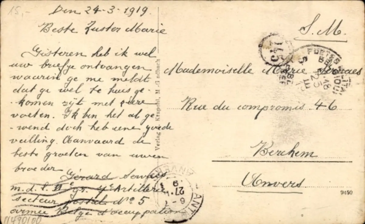Zustand, siehe Scan, gelaufen, 1919 - ca 9 cm X 14 cm