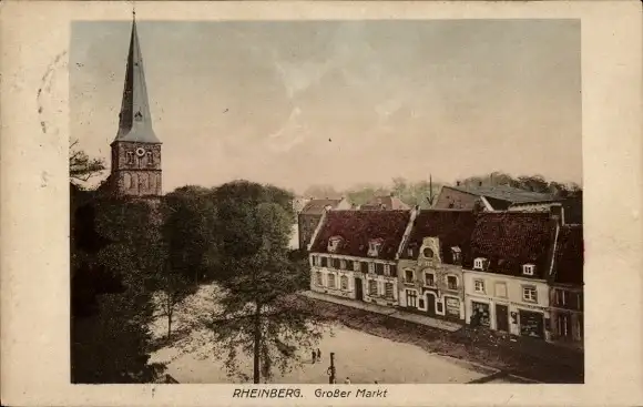 Ak Rheinberg am Niederrhein, großer Markt, Kirche