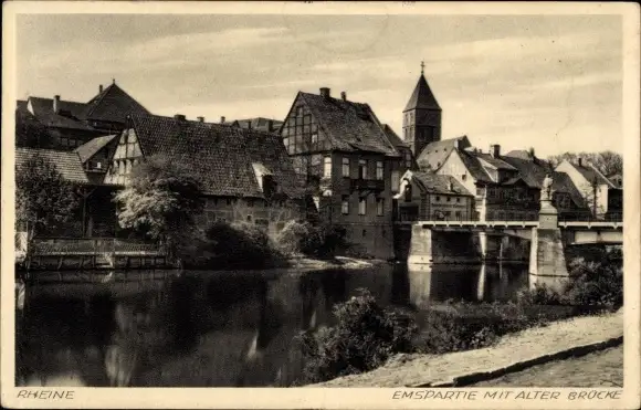Ak Rheine in Westfalen, Emspartie mit alter Brücke