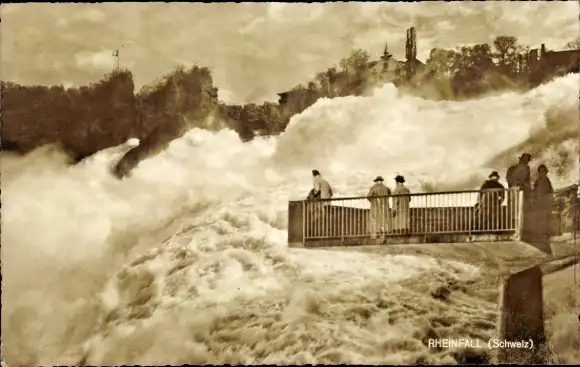 Ak Rheinfall Kanton Schaffhausen, Aussichtsplattform am Rheinfall