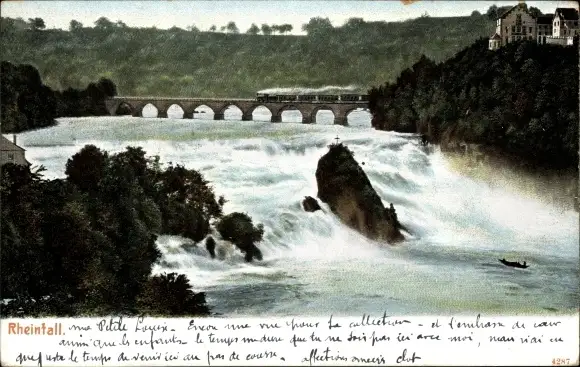 Ak Rheinfall Kanton Schaffhausen, Der Rheinfall, Viadukt, Lok