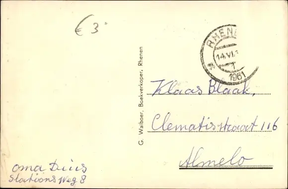 Zustand, siehe Scan, gelaufen, 1961 - ca 14 cm X 9 cm
