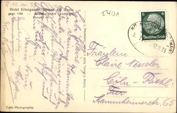 Zustand, siehe Scan, gelaufen, 1933 - ca 14 cm X 9 cm