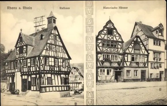 Ak Rhens am Rhein, Rathaus, Historische Häuser