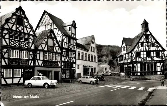 Ak Rhens am Rhein, Straßenpartie, Fachwerkhäuser
