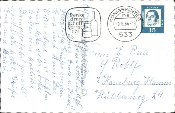 Zustand, siehe Scan, gelaufen, 1964 - ca 14 cm X 9 cm