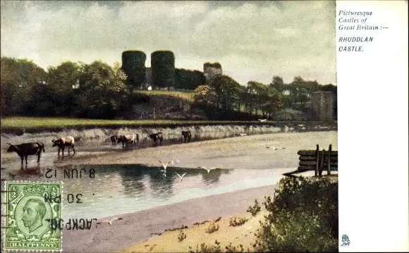 Ak Rhuddlan Wales, general view of the Rhuddlan Castle
