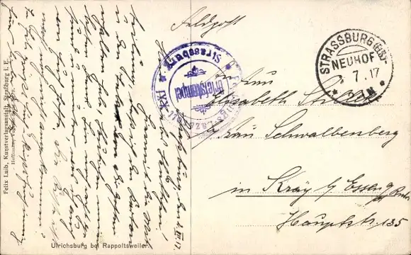 Zustand, siehe Scan, gelaufen, 1917 - ca 14 cm X 9 cm