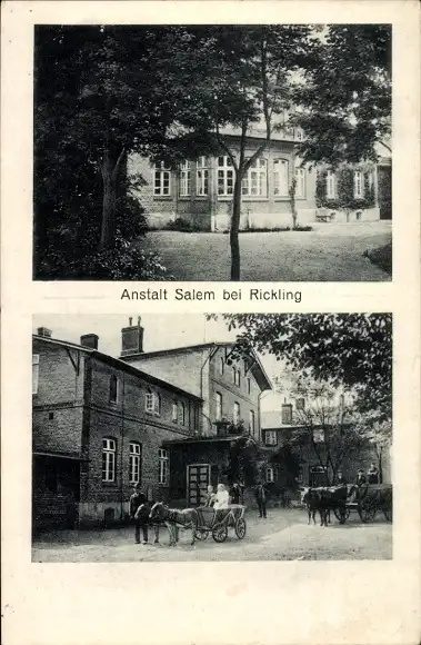 Ak Rickling in Holstein, Anstalt Salem, Pferdekutsche