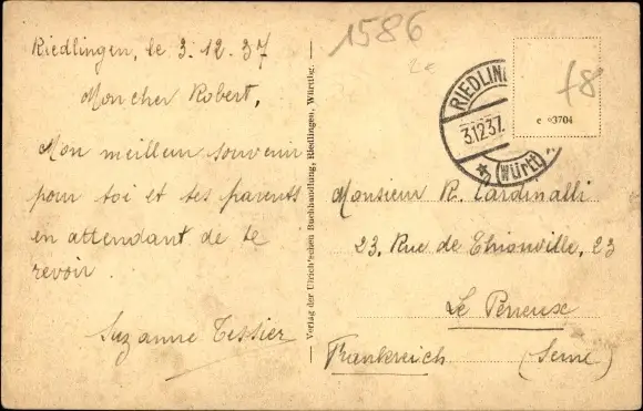 Zustand, siehe Scan, gelaufen, 1937 - ca 14 cm X 9 cm