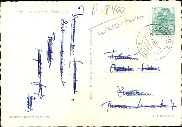 Ak Riesa an der Elbe, Am Wasserturm, Plakatwand