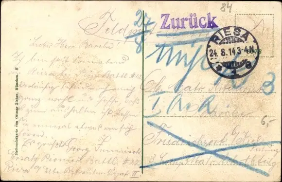 Zustand, siehe Scan, gelaufen, 1914- Verlag: Zieher - ca 14 cm X 9 cm