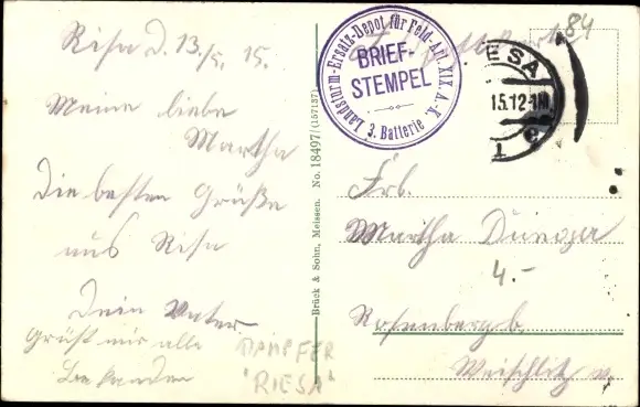 Zustand, siehe Scan, gelaufen, 1915 - ca 14 cm X 9 cm