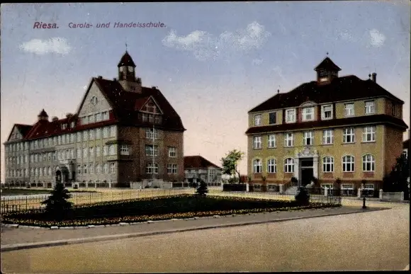 Ak Riesa an der Elbe Sachsen, Carolaschule, Handelsschule