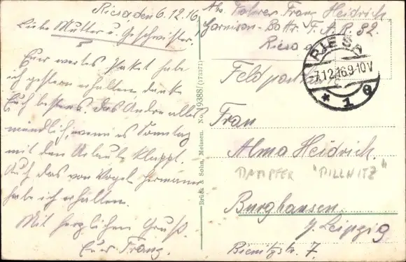 Zustand, siehe Scan, gelaufen, 1916 - ca 14 cm X 9 cm