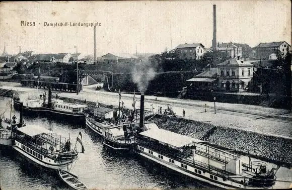 Ak Riesa an der Elbe Sachsen, Dampfschiff Landungsplatz, Elbpartie