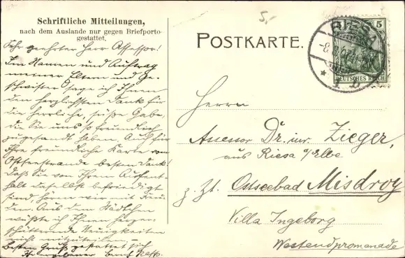 Zustand, siehe Scan, gelaufen, 1907 - ca 14 cm X 9 cm