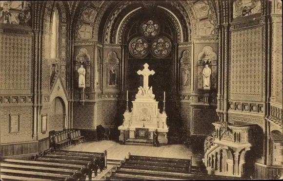 Ak Riesa an der Elbe Sachsen, Innenansicht der Trinitatiskirche, Altar, Kanzel