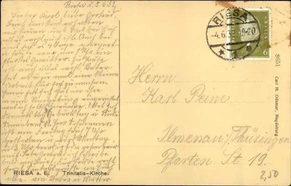 Zustand, siehe Scan, gelaufen, 1932 - ca 14 cm X 9 cm