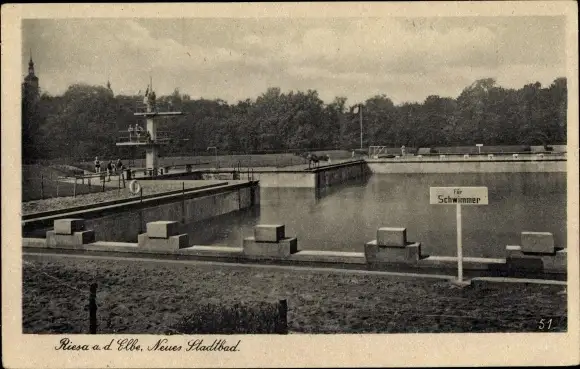 Ak Riesa an der Elbe Sachsen, Neues Stadtbad