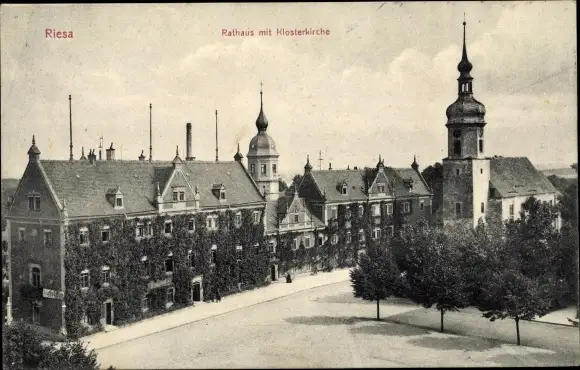 Ak Riesa an der Elbe Sachsen, Rathaus und Klosterkirche