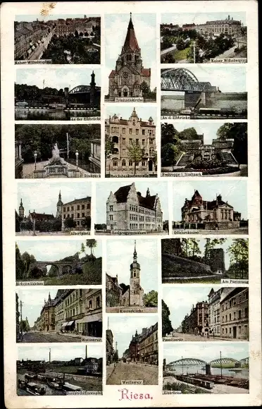 Ak Riesa an der Elbe Sachsen, Stadtpark, Elbbrücke, Kirche
