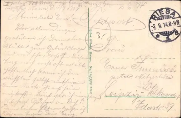 Zustand, siehe Scan, gelaufen, 1914 - ca 14 cm X 9 cm