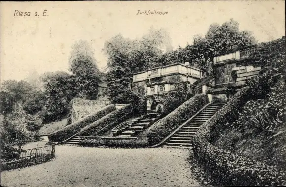 Ak Riesa an der Elbe Sachsen, Stadtpark, Freitreppe