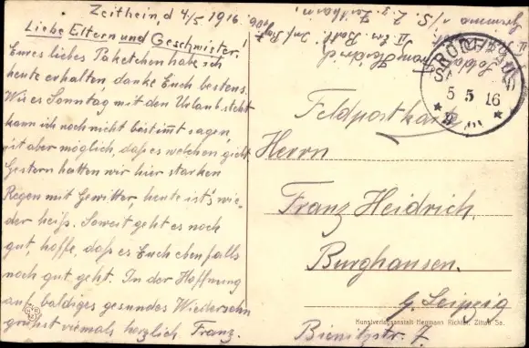 Zustand, siehe Scan, gelaufen, 1916 - ca 14 cm X 9 cm