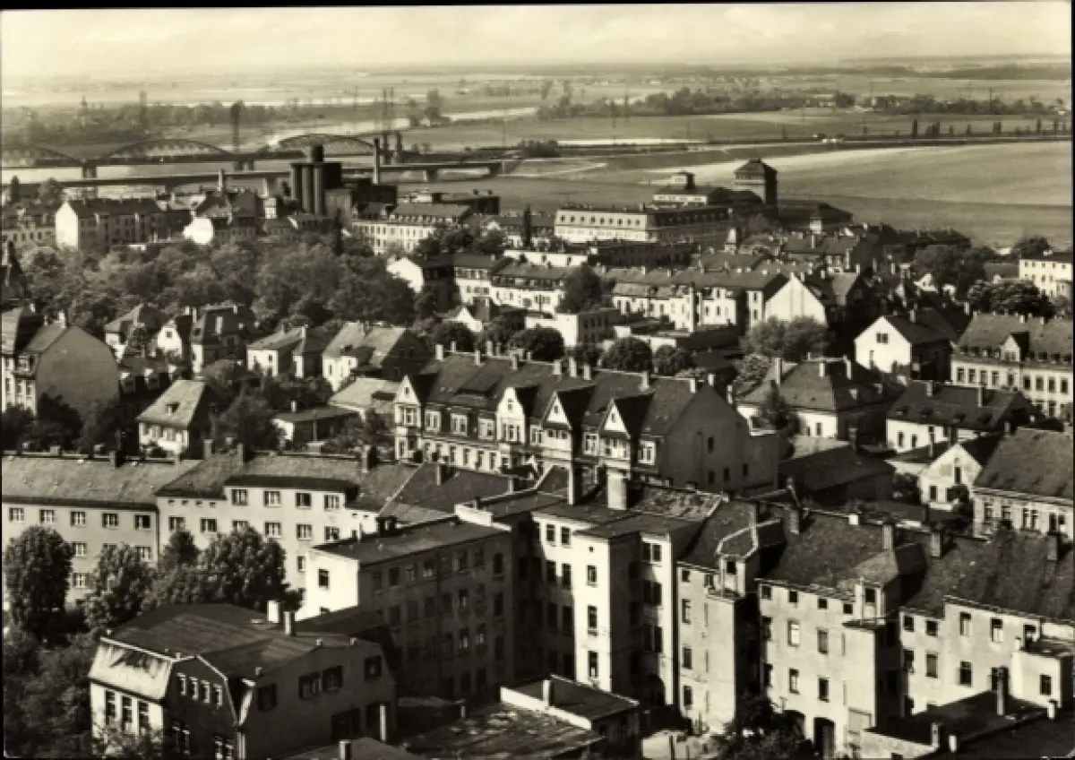 Ak Riesa an der Elbe Sachsen, Teilansicht aus der Vogelschau